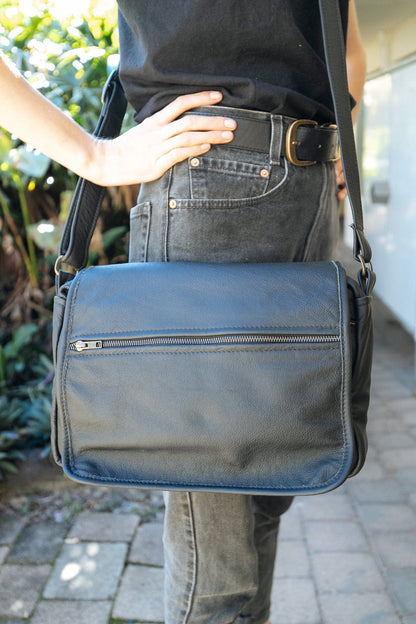 Medium Size Satchel suitable for carrying a small laptop or iPad, A5 Books, and all your other necessities.